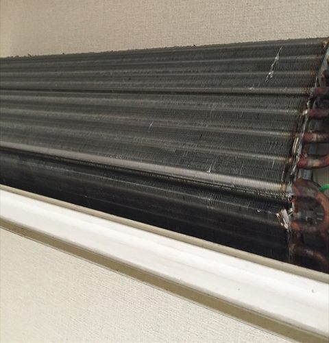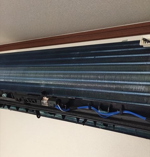東芝の熱交換器のブルーはカビや汚れ落すとホントに綺麗です、汎用機でも樹脂コーティングでしょうか?