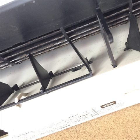 3台とも違うメーカーのエアコンでほぼ同じような汚れの状態でしたが、リビングに設置されている東芝がキッチンに近く油を吸い込むので1番汚れていましたが、お任せ頂ければ油汚れからカビやホコリまで綺麗にクリーニングしてお戻ししますのでお気軽に連絡ください。