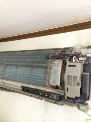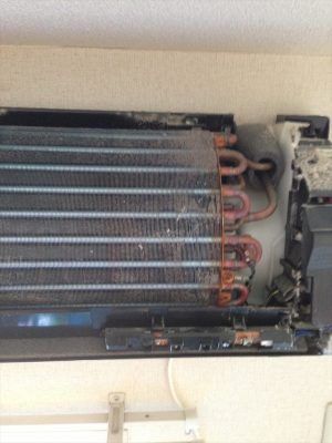 家庭用エアコンクリーニングでも(10年前なら当たり前に)強アルカリの洗剤が使われていました、今でも直ぐにキレイになるからと使われている業者もありますが、洗浄後の濯ぎが足りなかったり中和作業をしないと熱交換器の腐食や洗剤の残留による2次被害などの心配もあり私どもでは植物洗剤のみ使用しています。