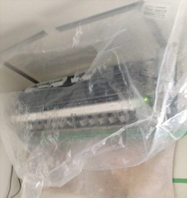事前にエアコンの下に脚立を立てられるスペース空けて頂いていたので、何とか時間内で終わらせる事ができたのは良かったのですが、問題も発生。