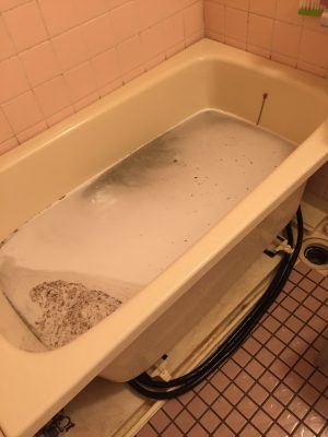 伺ってお風呂の追い焚き運転すると、直ぐに浴槽の底に汚れが溜まります。