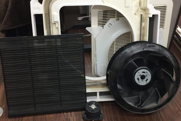 綺麗に洗ったドレンパンやファンを組み戻して1台目終了です。