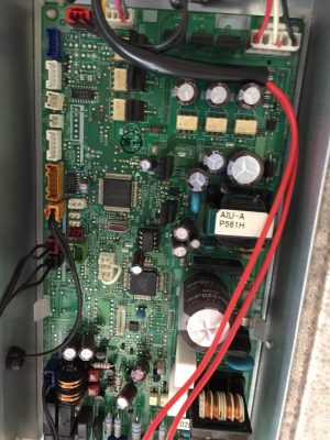 この基盤がエアコンの指令室のようなモノです、これを外さないと洗浄できません。