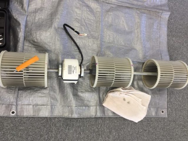 ちょっと特殊なドライバー(オレンジの柄)でモーター軸からファン外します。