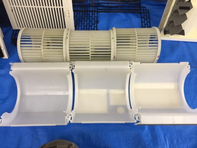 工事中もエアコン使って作業されるので工事の際に発生したホコリを多量に吸い込むのでエアコンがとても汚れます、なので掃除屋の仕事は1番最後になります。