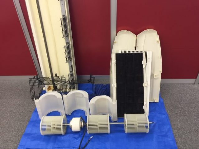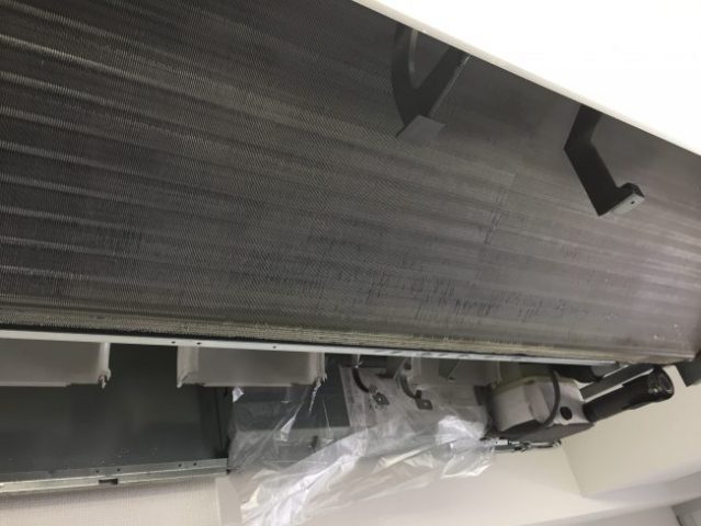 洗浄後!熱交換器のカビやホコリをアルカリ洗剤と高圧洗浄機によって綺麗にします。