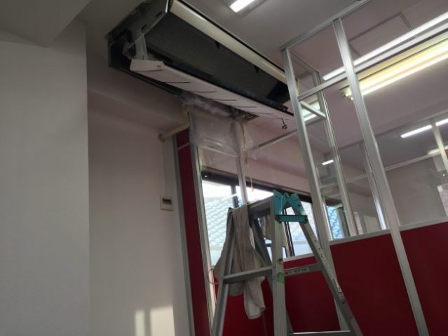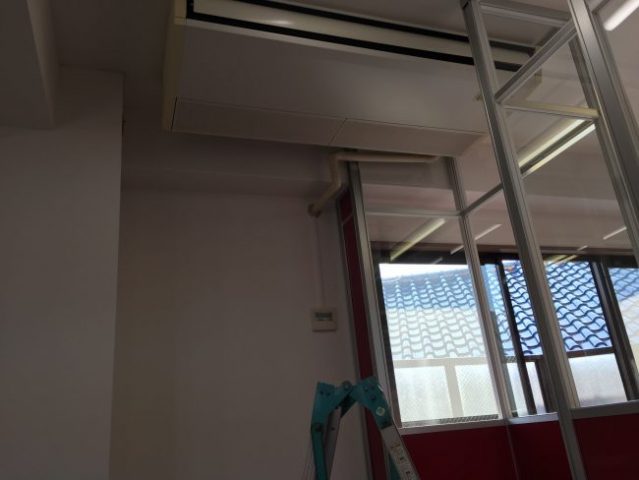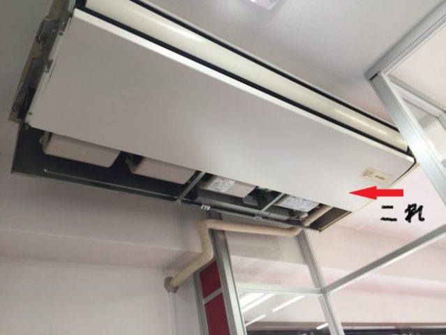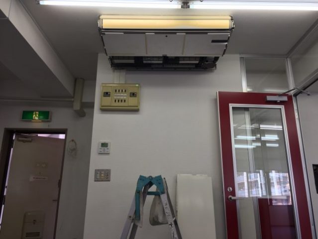 当日keyボックスから事務所のカギ取り出し早速作業に入らせて頂きます、最初はダイキン天吊り1方向エアコンから。