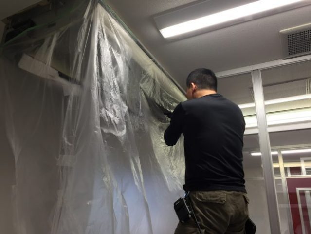 新たなテナントが入居する前に改装工事とエアコンクリーニング終わらせるそうで、改装工事が終わった翌日から作業入らせて頂きました。