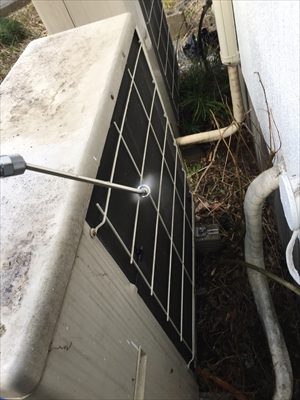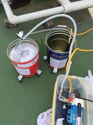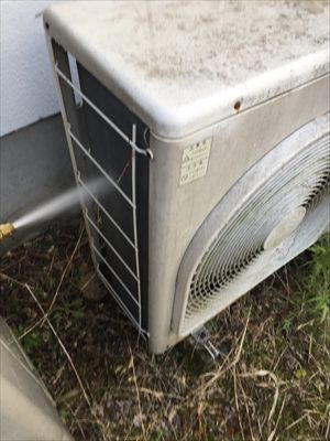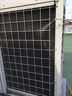 たっぷりの洗浄液作って大型の業務用エアコン室外機の高圧洗浄です!