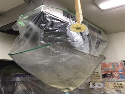 続いて病院内の厨房に設置された業務用の厨房専用エアコンのクリーニングです。