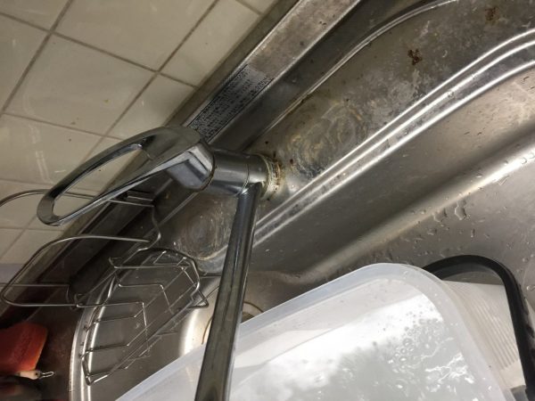 水栓の水垢は1年では殆ど付着していませんので軽く磨いておきます。