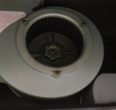 お弁当持たせる子供さんが2人居るので油モノは頻度が高いそうですが、2年で油が垂れてくる事はないと思いますので、取り敢えずレンジフードのファン取り出して分解して見るとファン納めるケース内に油溜まりが結構な厚みで残って下に垂れています。