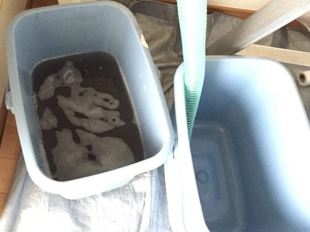 洗浄カバー掛けてエコ洗剤jh-1を熱交換器から送風ファンまでたっぷり掛けたら、カビと反応する時間取って一気に高圧洗浄で洗い流します。