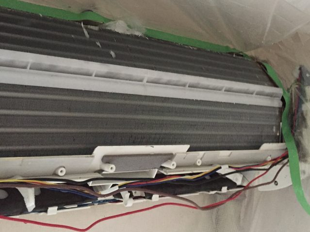 これはエアコンクリーニング屋さんの多くがちょっと大変だなと思う、初期型のシャープお掃除機能エアコンです。