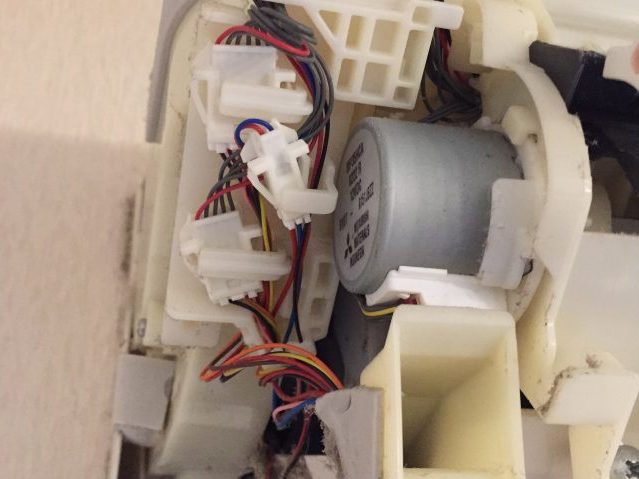 写真に見えるのが排気ファンでパイプの中に見えるのがホコリの塊でこの状態のまま詰まって外に排気できず中がホコリだらけになってるエアコンもあります。
