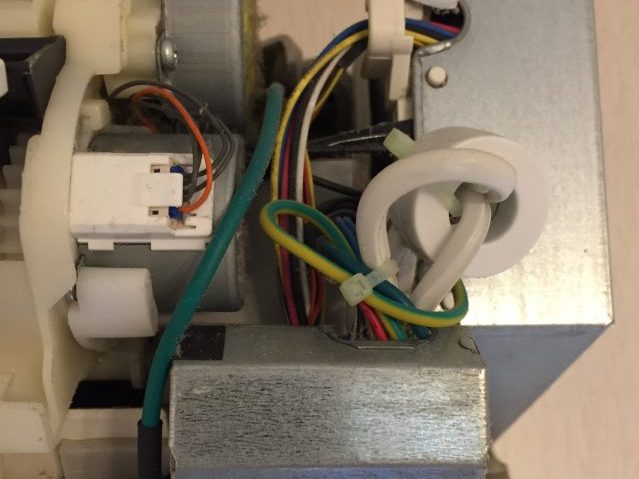 上の初期型タイプと比べると右に左に跨る配線がなくなったので、お掃除機能の分解脱着も随分と楽になりました。