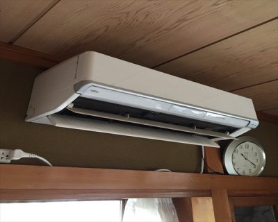 今日1軒目は八王子市の〇様宅で富士通ノクリアお掃除機能付きエアコンのクリーニングから