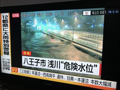 テレビを付ければ報道各局が八王子市内を流れる浅川が氾濫危険水位に達した!!との報道。