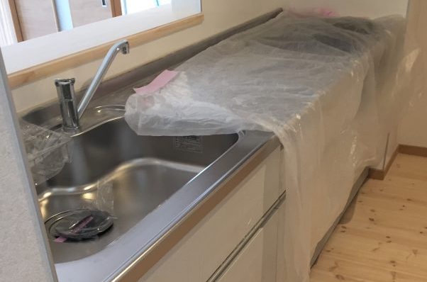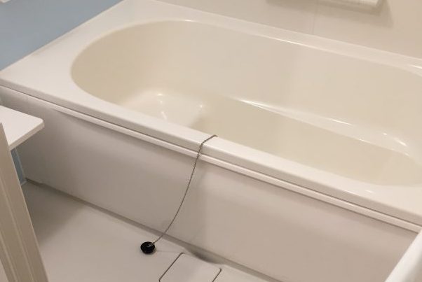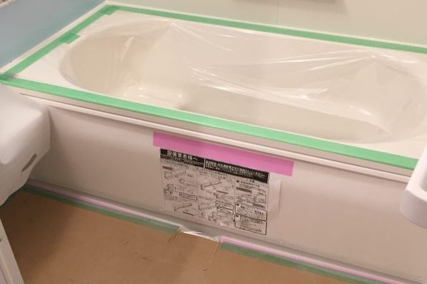 浴槽のFRP樹脂は砂埃などで擦られるとスリキズが入るので養生は必須です。