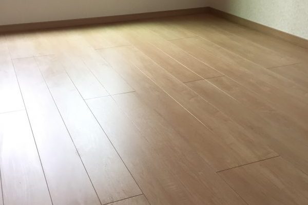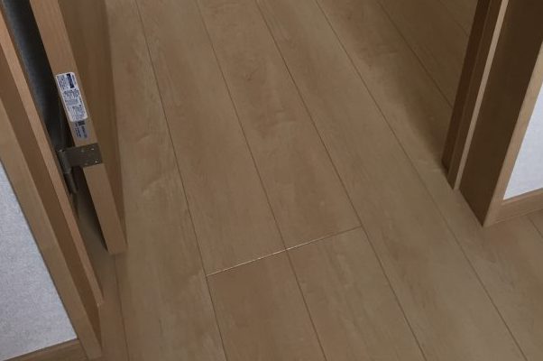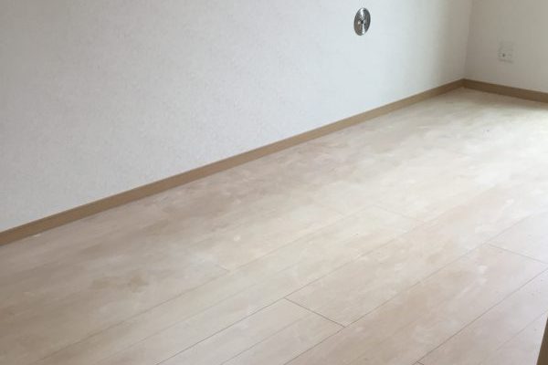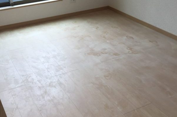 この程度の糊なら洗えば取れるので問題ありませんが、稀に接着材を床に点々と垂らしたまま固まっている酷い現場があり、刃物当てないと取れないモノがあります。