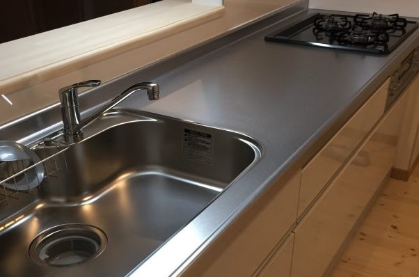 クリーニング後のキッチンです、外はすっかり暗くなっています。