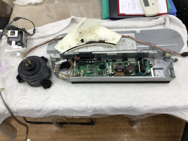 ・写真はエアコンを動かす最も大事なエアコン制御基板とファンモータ、ドレンポンプです。
